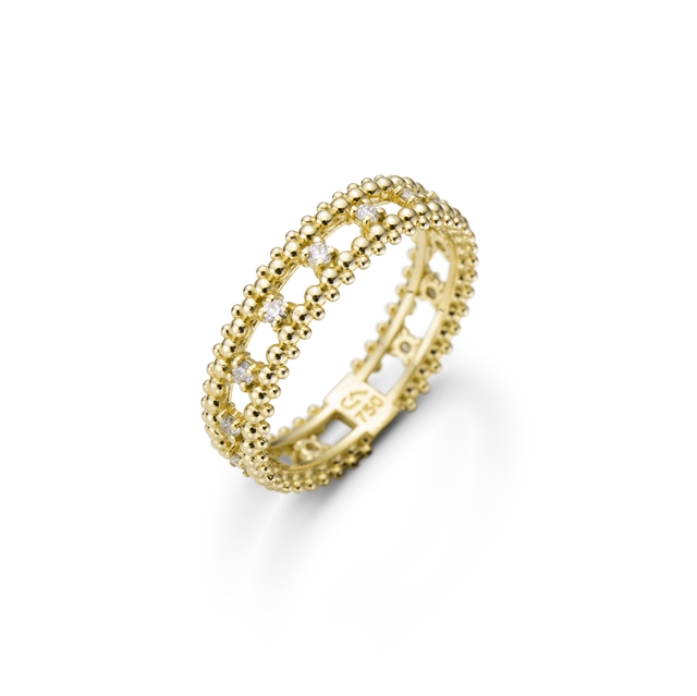 Aliança em ouro 18K amarelo com brilhantes.