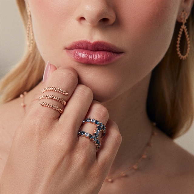 O Anel Abraça-me envolve o dedo com suavidade e movimento, em um desenho que traduz o gesto simbólico do acolhimento. As delicadas esferas em ouro 18K se entrelaçam em espirais contínuas, criando uma joia fluida e expressiva que reflete o equilíbrio entre forma e afeto.