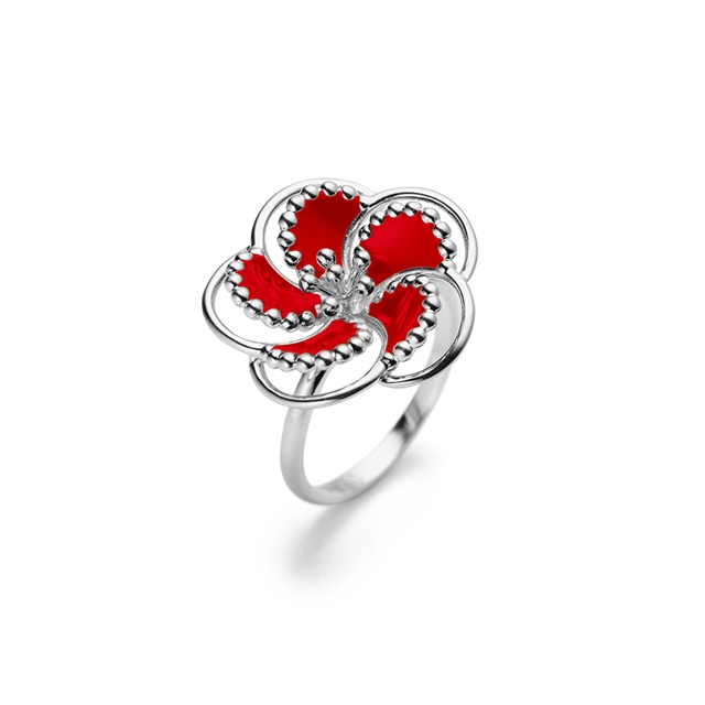 Anel em ouro 18k branco com esmalte vermelho.