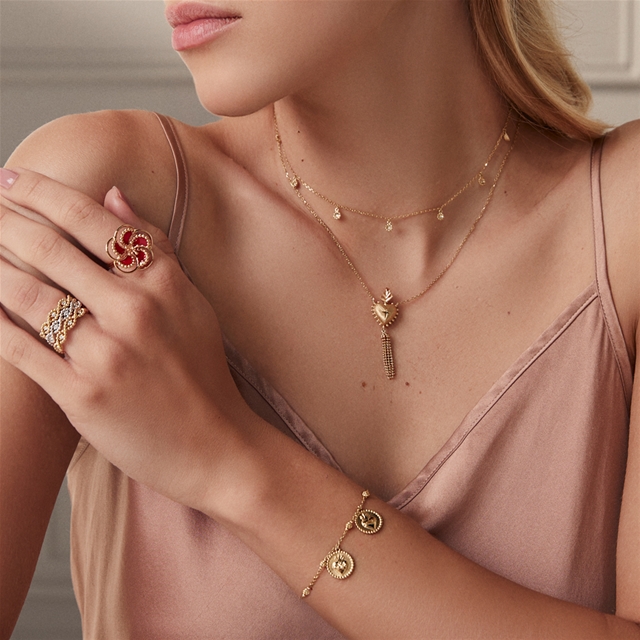 Ouro 18K com acabamento em esmaltação premium.