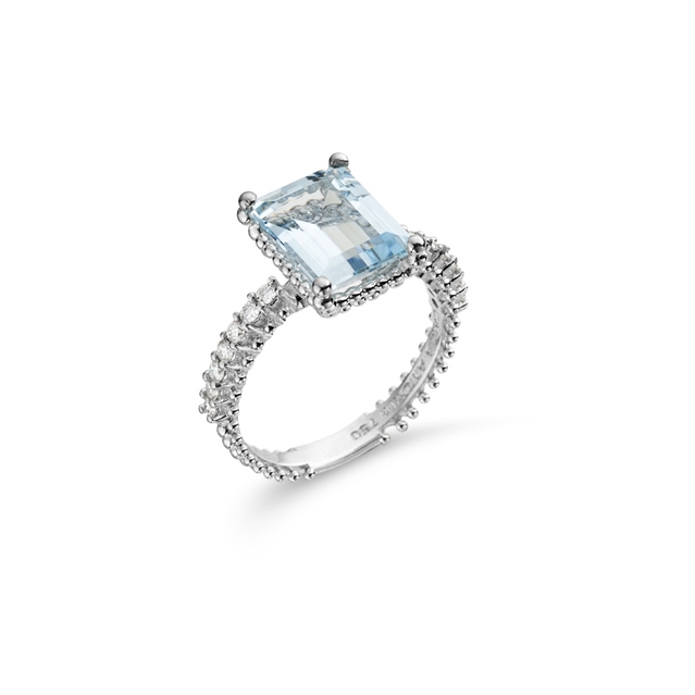 Anel em ouro 18K com água marinha e brilhantes.