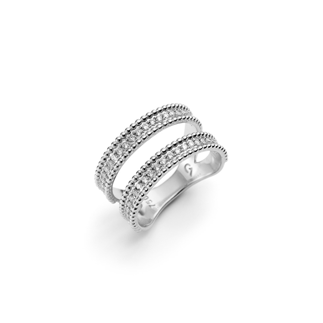 O anel Claridade faz parte da coleção Cobogó. Inspirada no elemento arquitetônico de origem árabe e sendo capaz de introduzir formas, volumes e sombras nos desenhos, Carla criou esta coleção para destacar a luz de uma arquitetura moderna, como a de Brasília, relacionando suas joias com obras de arte.