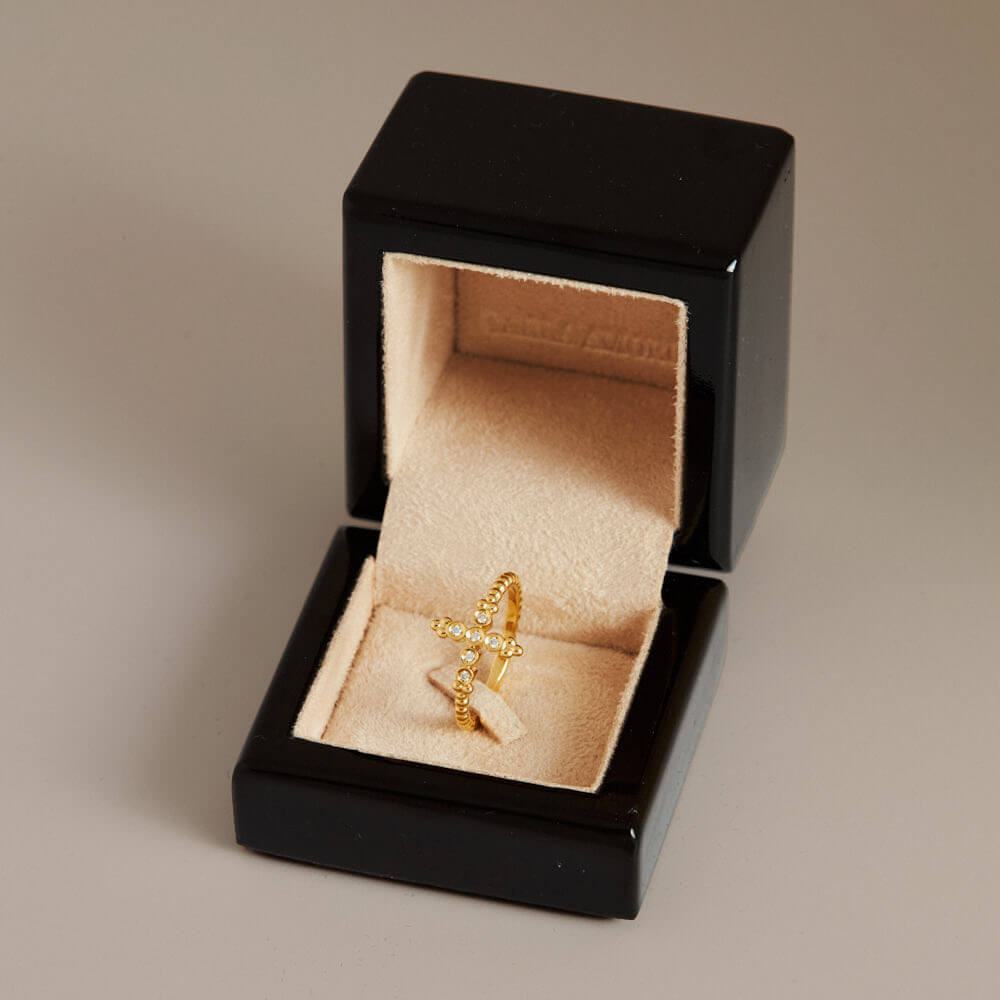 O Anel Luz do Céu pertence à coleção Sagrado. Inspirado na simbologia da cruz, traduz fé e proteção em uma joia de traços delicados e proporções equilibradas.