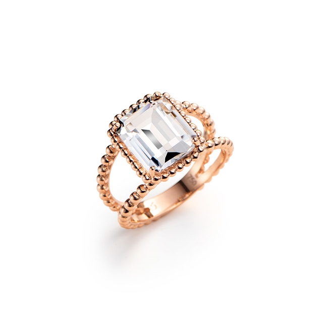 Anel em ouro 18K rosa com quartzo incolor.