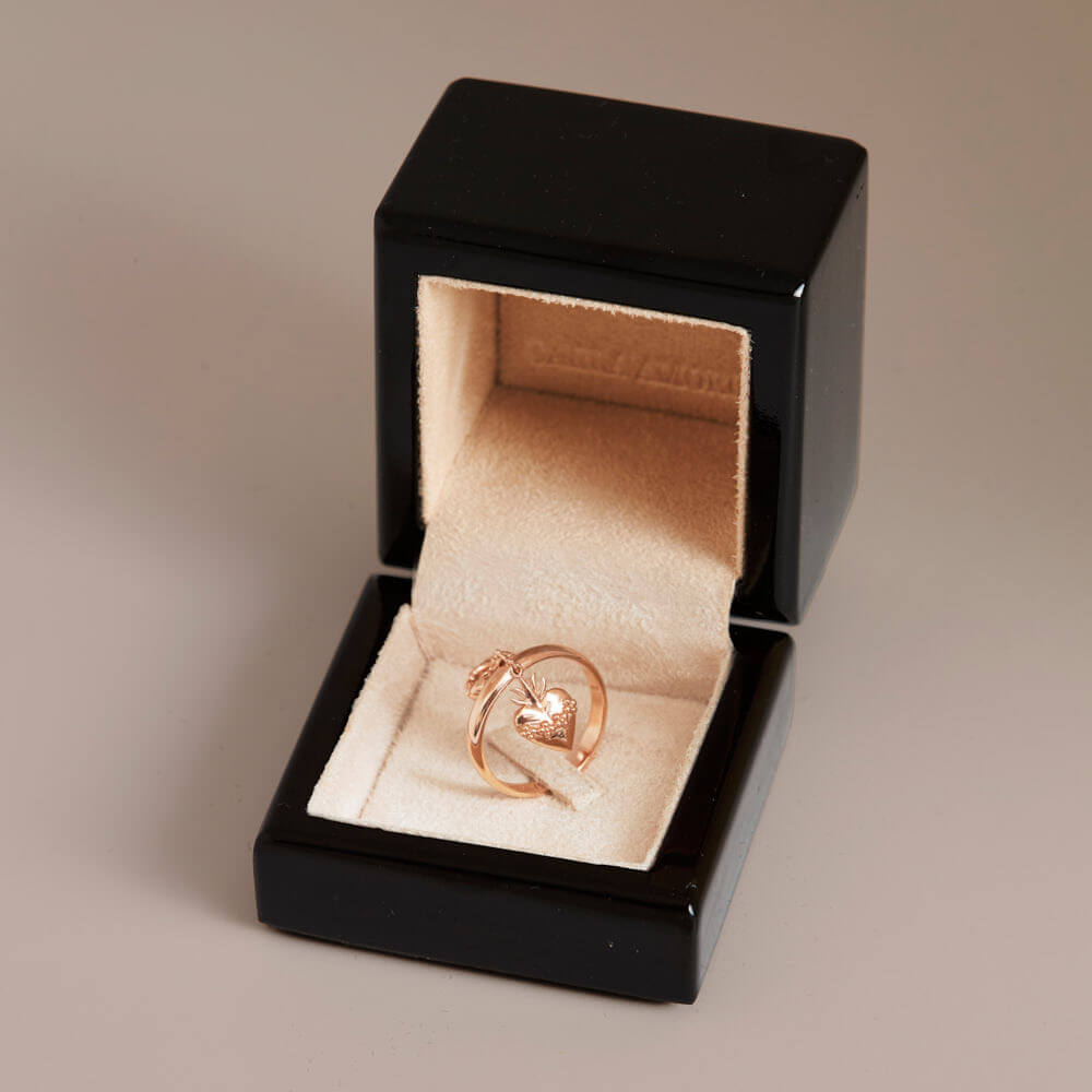 Em ouro 18k, o Anel Sagrados Corações possui movimento e dialoga com outras peças da linha. Uma joia que simboliza fé, conexão e sentimentos em constante transformação.