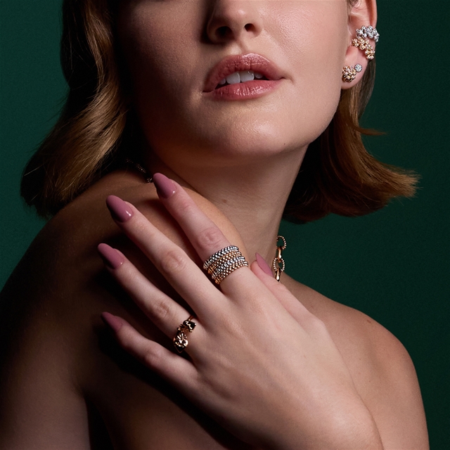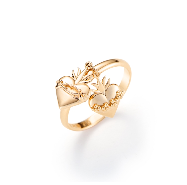 Em ouro 18k, o Anel Sagrados Corações possui movimento e dialoga com outras peças da linha. Uma joia que simboliza fé, conexão e sentimentos em constante transformação.