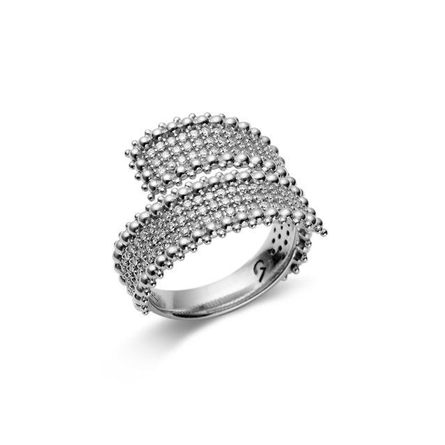 Anel em ouro 18K branco com brilhantes.