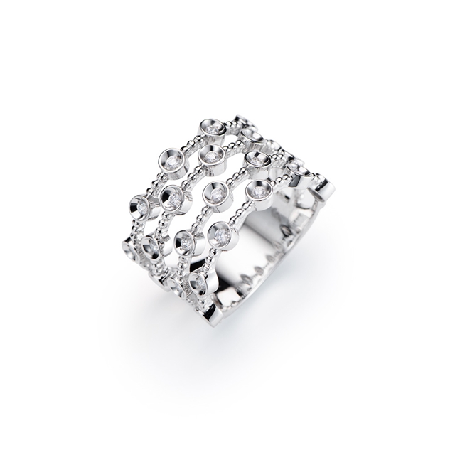 Anel em ouro 18K branco com brilhantes.