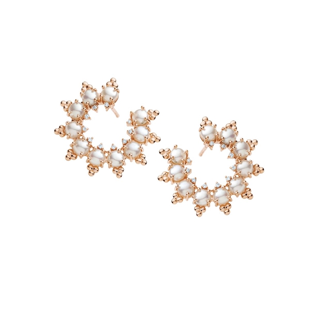 Brinco em ouro 18K com pérolas e brilhantes.