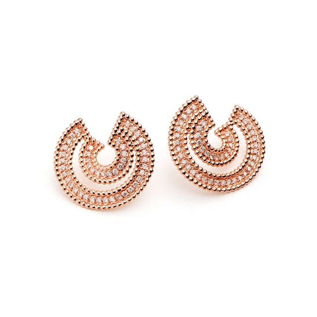 Brinco em ouro 18K rosa com brilhantes.