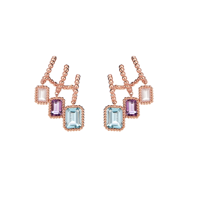 Os brincos Colorée fazem parte da coleção Colorée. A criação nasce como um encontro entre luz e geometria, inspirada no olhar arquitetônico de Carla e na homenagem a Daniel Buren, onde cor e forma se tornam linguagem. As pedras dialogam entre si como pinceladas de um quadro vibrante, revelando uma joia que respira arte, movimento e intensidade cromática.