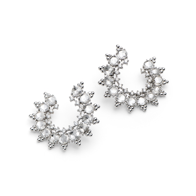 Brinco em ouro branco 18K com rose cut e brilhantes.
