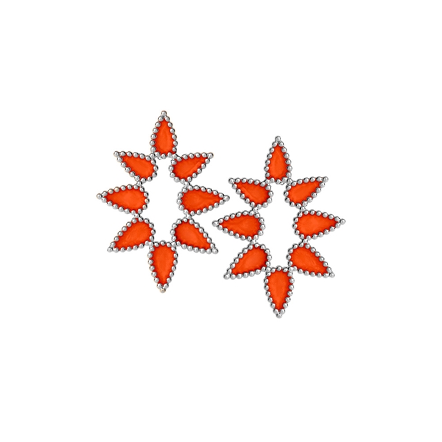 Os brincos Gentileza fazem parte da coleção Florescer. A peça nasce da delicadeza das pétalas que se abrem ao amanhecer, reinterpretadas em um desenho contemporâneo que valoriza curvas orgânicas e texturas exclusivas. A superfície em “espuma do mar” cria um relevo suave que conversa com a esmaltação vibrante, trazendo profundidade, luz e movimento ao ouro 18K. É uma joia que celebra o gesto, a leveza e a beleza que floresce no encontro entre cor e forma.