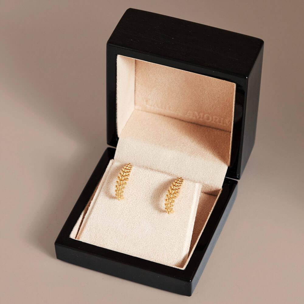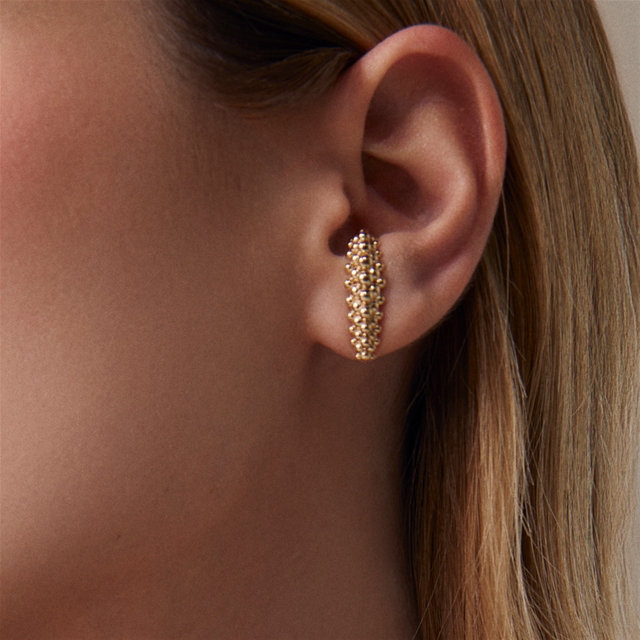 O Brinco Hook Espuma foi inspirado nas dunas dos Lençóis Maranhenses e leva a textura icônica da Espuma do Mar, presente desde as primeiras criações de Carla Amorim. O design evidencia o movimento natural das formas, em diálogo entre leveza e estrutura.