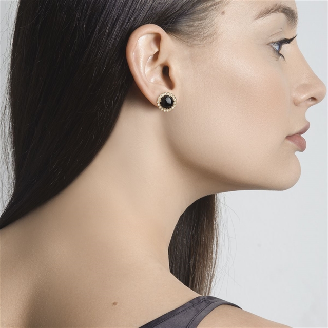 Brinco em ouro amarelo 18K, Quartzo negro e brilhantes.