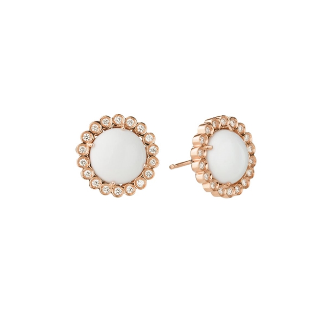 Brinco em ouro rosa 18K, ágata branca e brilhantes.