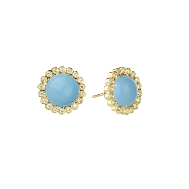 Brinco em ouro amarelo 18K, Turquesa e brilhantes.
