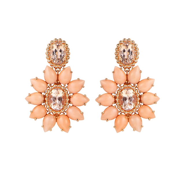 Brinco em ouro 18K rosa com morganita e coral podange.