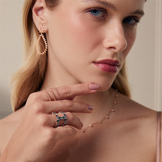 Ouro rosa 18K com acabamento polido.