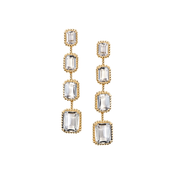 Brinco em ouro 18K amarelo com quartzo incolor.