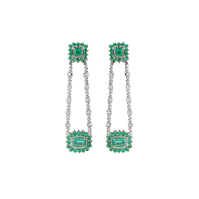 Os brincos Praia do Sancho fazem parte da coleção Oceamo. A peça nasce da contemplação do mar, inspirada nas texturas da espuma, nas nuances das águas e no movimento contínuo das ondas que sempre guiaram o olhar criativo de Carla. A esmeralda ganha destaque no ouro 18K, iluminada pelo brilho dos diamantes naturais, criando uma joia que traduz profundidade, frescor e poesia marítima.