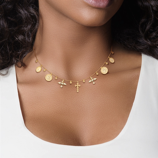 O colar Fortaleza faz parte da coleção Sagrado. Carla faz referência a lembrança de onde encontramos a paz, o refúgio, a luz que nos guia, a fortaleza o socorro e a proteção.