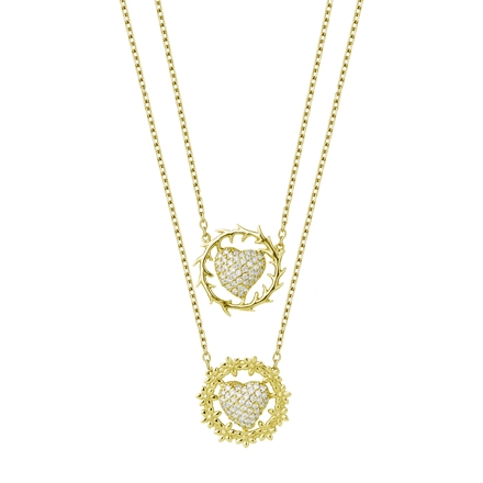 Inspirada na religiosidade como um de seus pilares criativos, Carla trás a Colar Sagrados Corações, um clássico da coleção Sagrado.