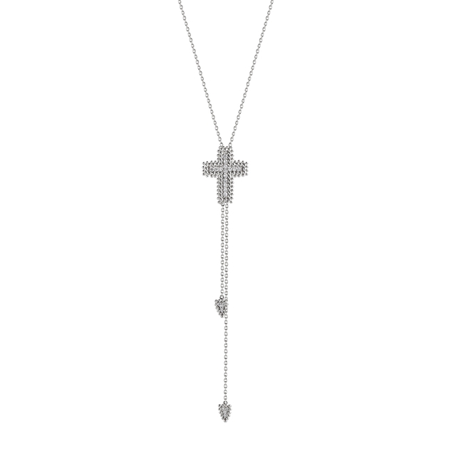 O colar Santa Cruz faz parte da coleção Sagrado. Carla faz referência a lembrança de onde encontramos a paz, o refúgio, a luz que nos guia, a fortaleza o socorro e a proteção.