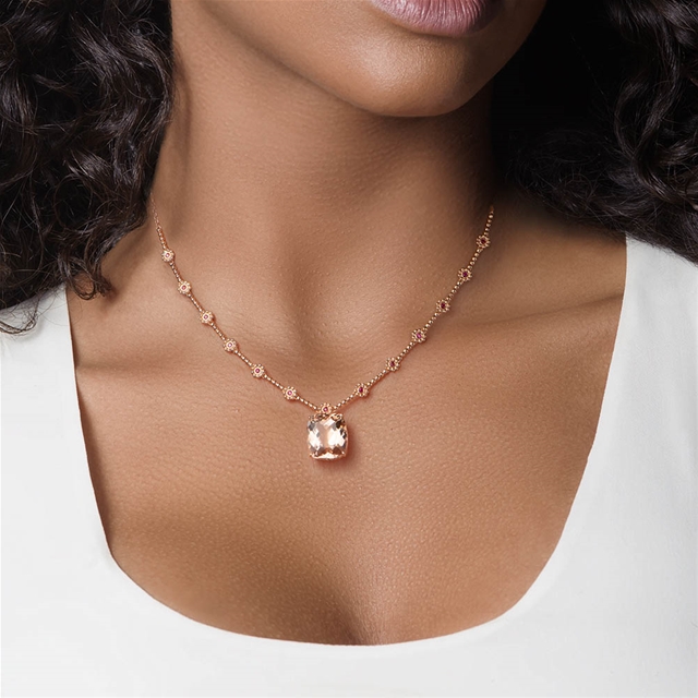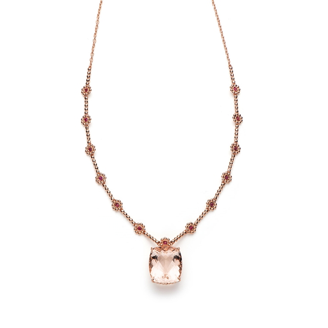 Colar em ouro 18K rosa com morganita e rubi.