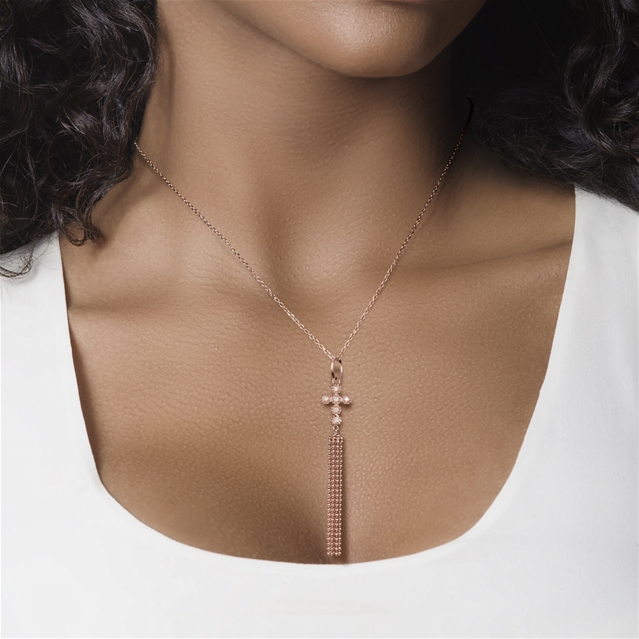Cruz em ouro rosa 18k com brilhante.