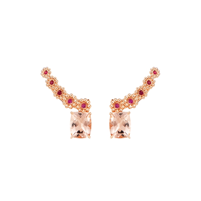 Earcuff em ouro 18K rosa com morganita e rubi.
