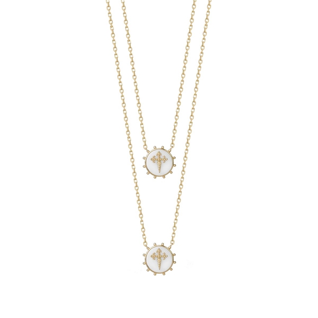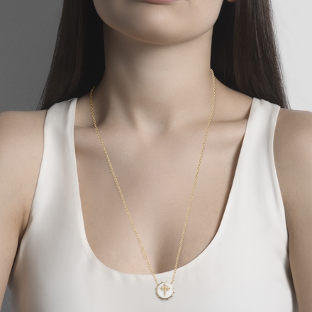 O escapulário Cruz de Santiago faz parte da coleção Sagrado. Uma peça belíssima com ícone religioso em ouro 18K aplicado na ágata branca.