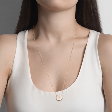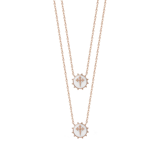 O escapulário Cruz de Santiago faz parte da coleção Sagrado. Uma peça belíssima com ícone religioso em ouro rosa 18K aplicado na ágata branca.
