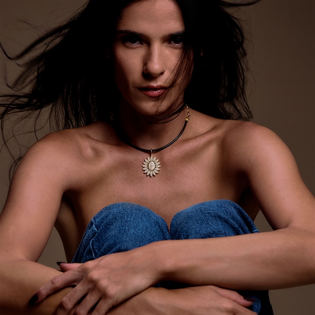 Foto de modelo meramente ilustrativa de como a joia compõe o visual.
