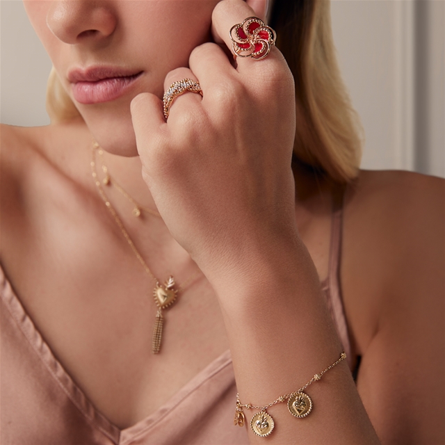Delicada e repleta de significado, a Pulseira Amorinhas com Mini Sagrados Corações combina o ouro 18K a pequenos ícones de devoção e amor. Os minidetalhes do Sagrado Coração conferem movimento e simbolismo à peça, resultando em uma joia graciosa e afetiva.