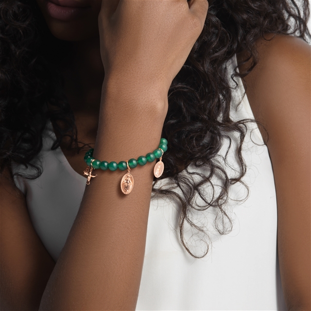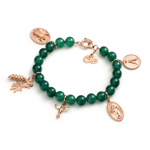 Pulseira em ouro 18K rosa com agata verde e brilhantes.